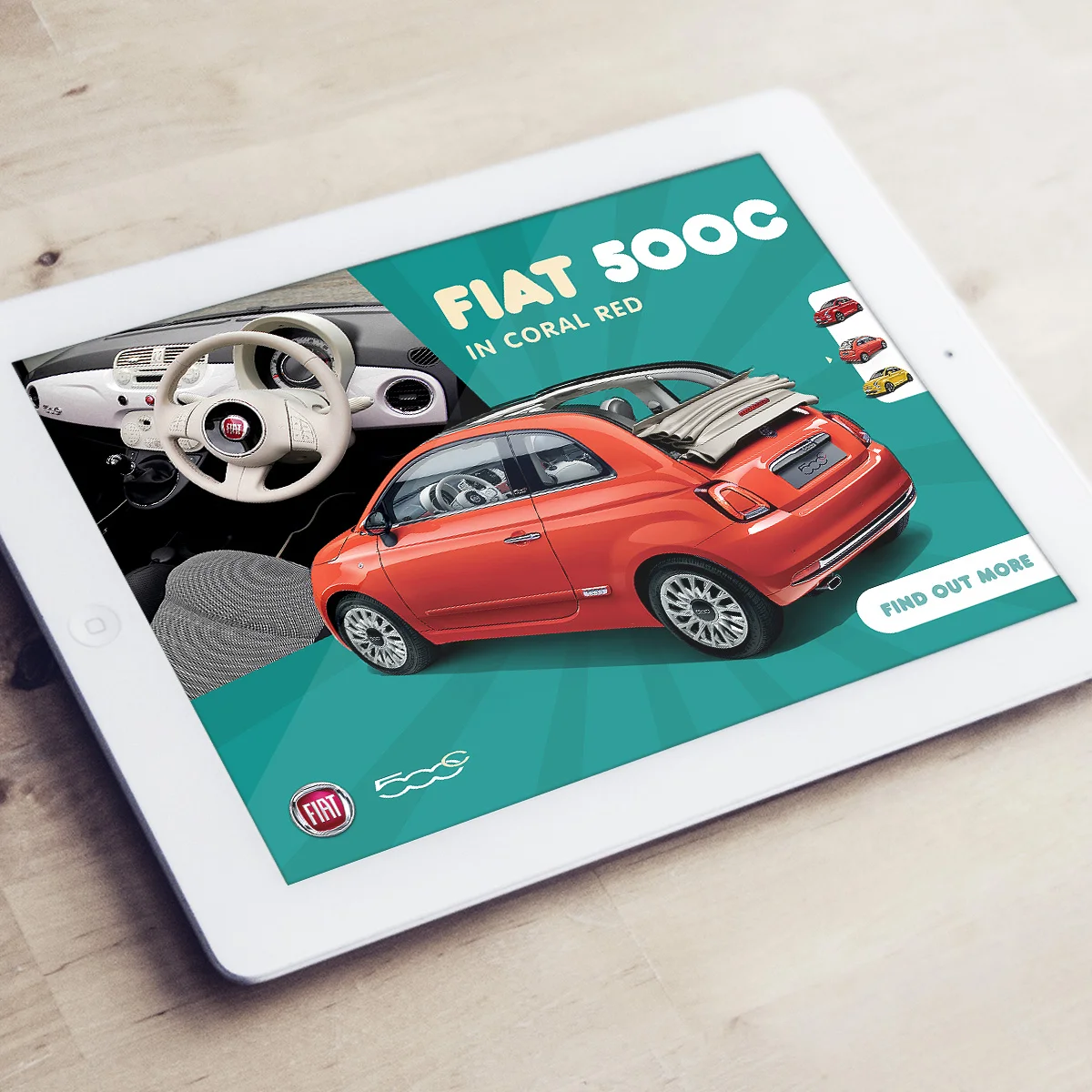 I used this as an opportunity to promote the Fiat 500 range as a whole; proposing we include the 500C (convertible) and 500S (sport) to the creative. This added shelf-life to the campaign, and the client then used this throughout the whole year.